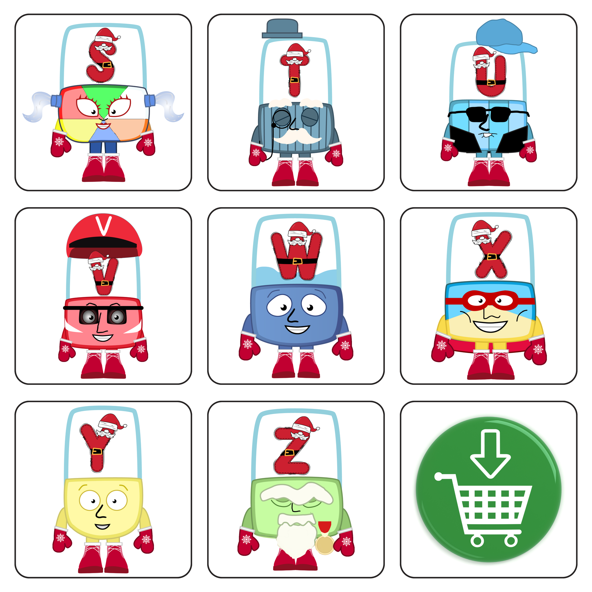 Celebrate the season with this playful set of Christmas-themed Alphablocks-style letters! Each character from A to Z is designed with festive flair—Santa hats, mittens, boots, beards, and cheerful expressions. Perfect for holiday classroom decor, flashcards, homeschool printables, and party banners.
