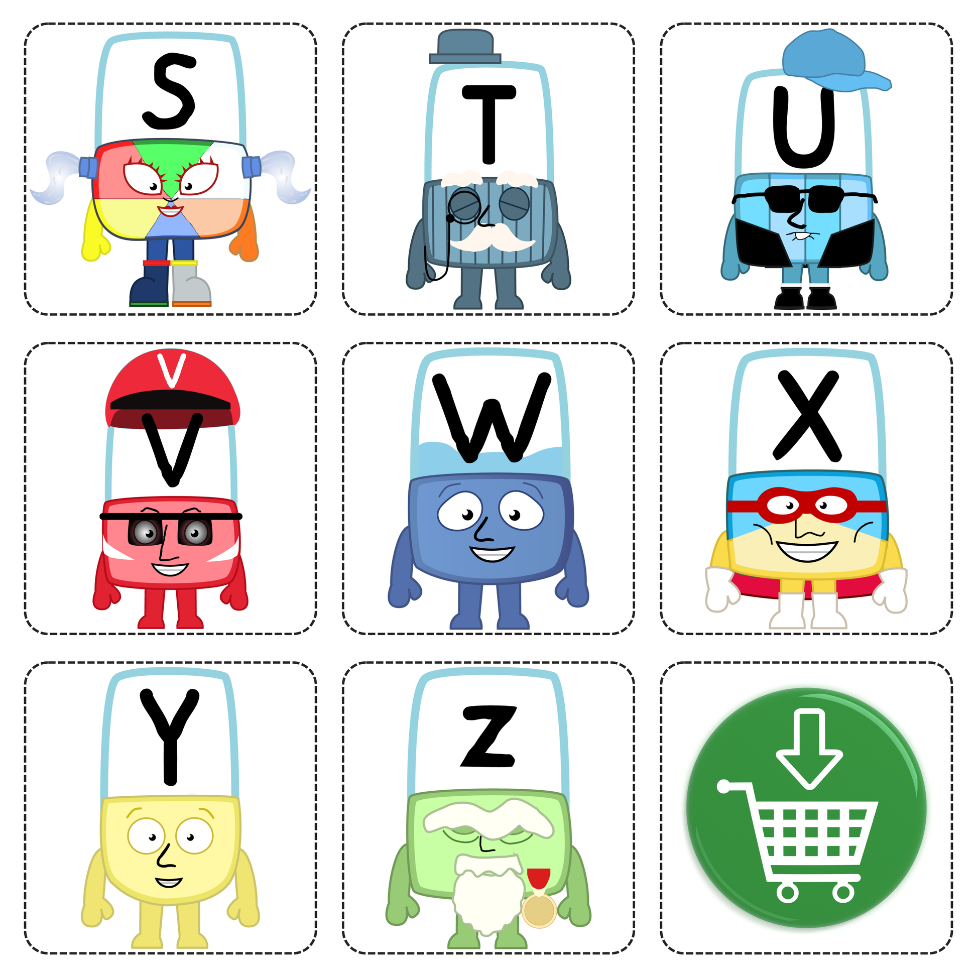 Turn letters into lovable learning companions with this full set of Alphablocks-style characters! Each letter from A to Z is transformed into a colorful cartoon character—complete with expressive faces, props, and personality. Perfect for preschool classrooms, homeschool printables, birthday banners, and literacy-themed crafts.